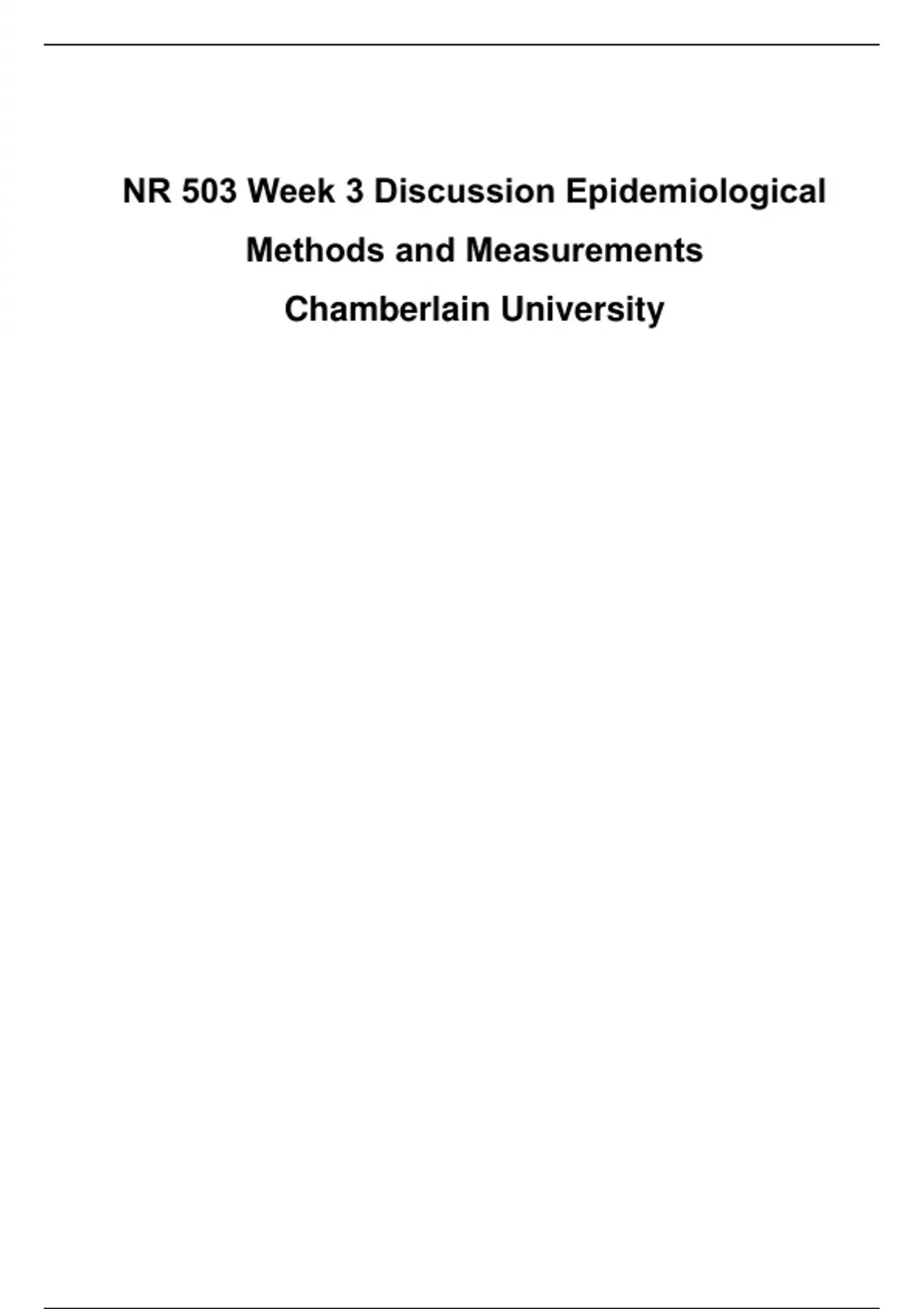 NR 503 Week 3 Discussion Epidemiological Methods and Measurements Chamberlain University