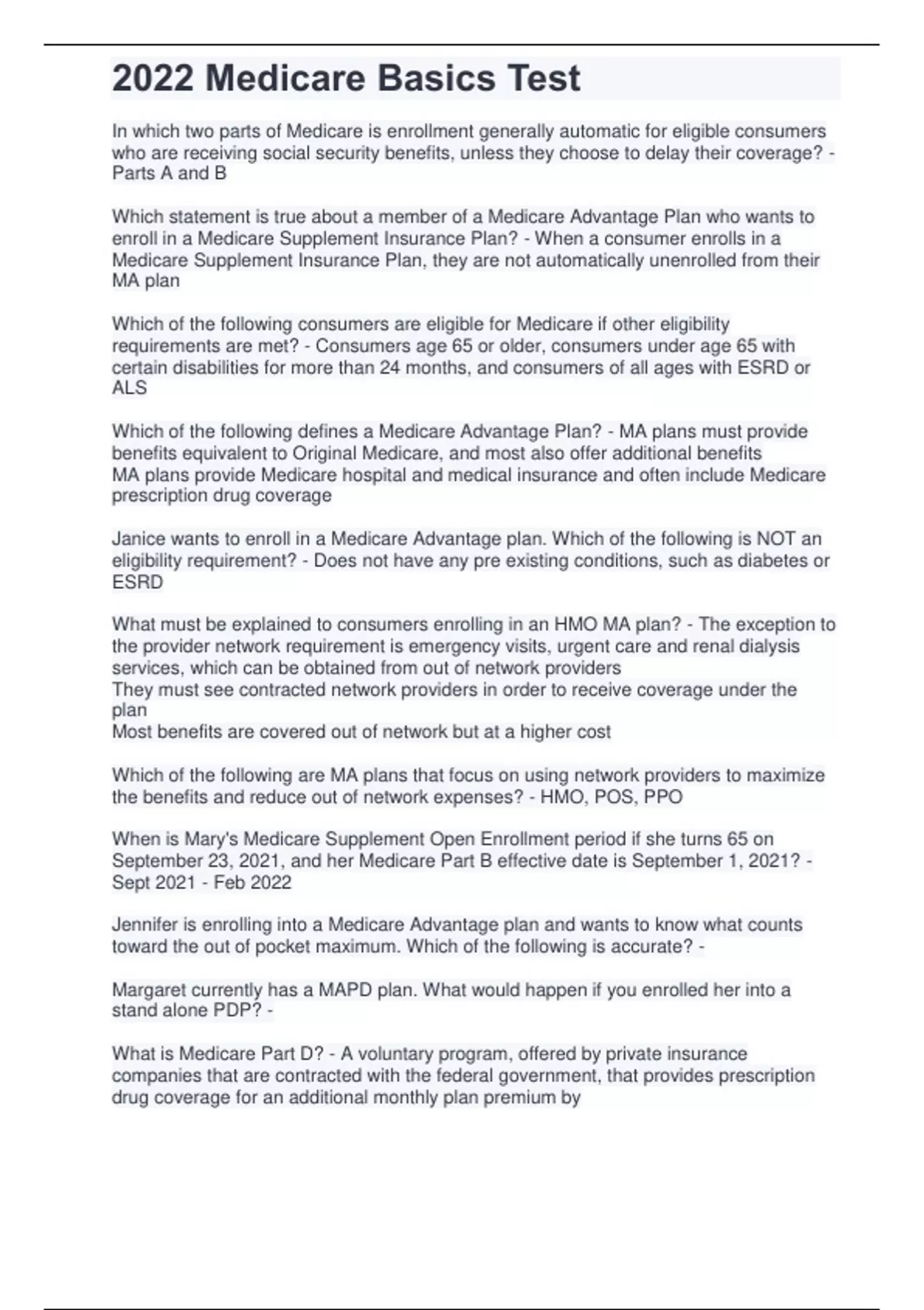 2022 Medicare Basics Test