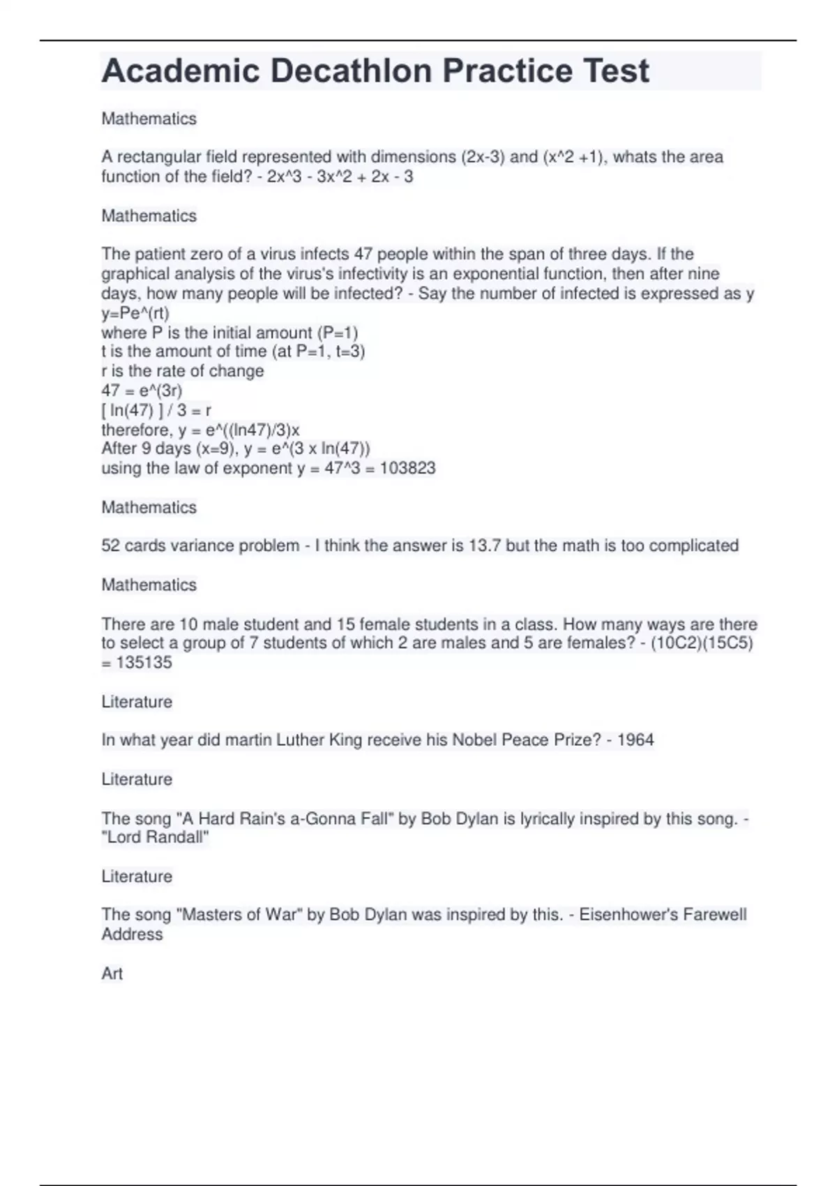 Academic Decathlon Practice Test.