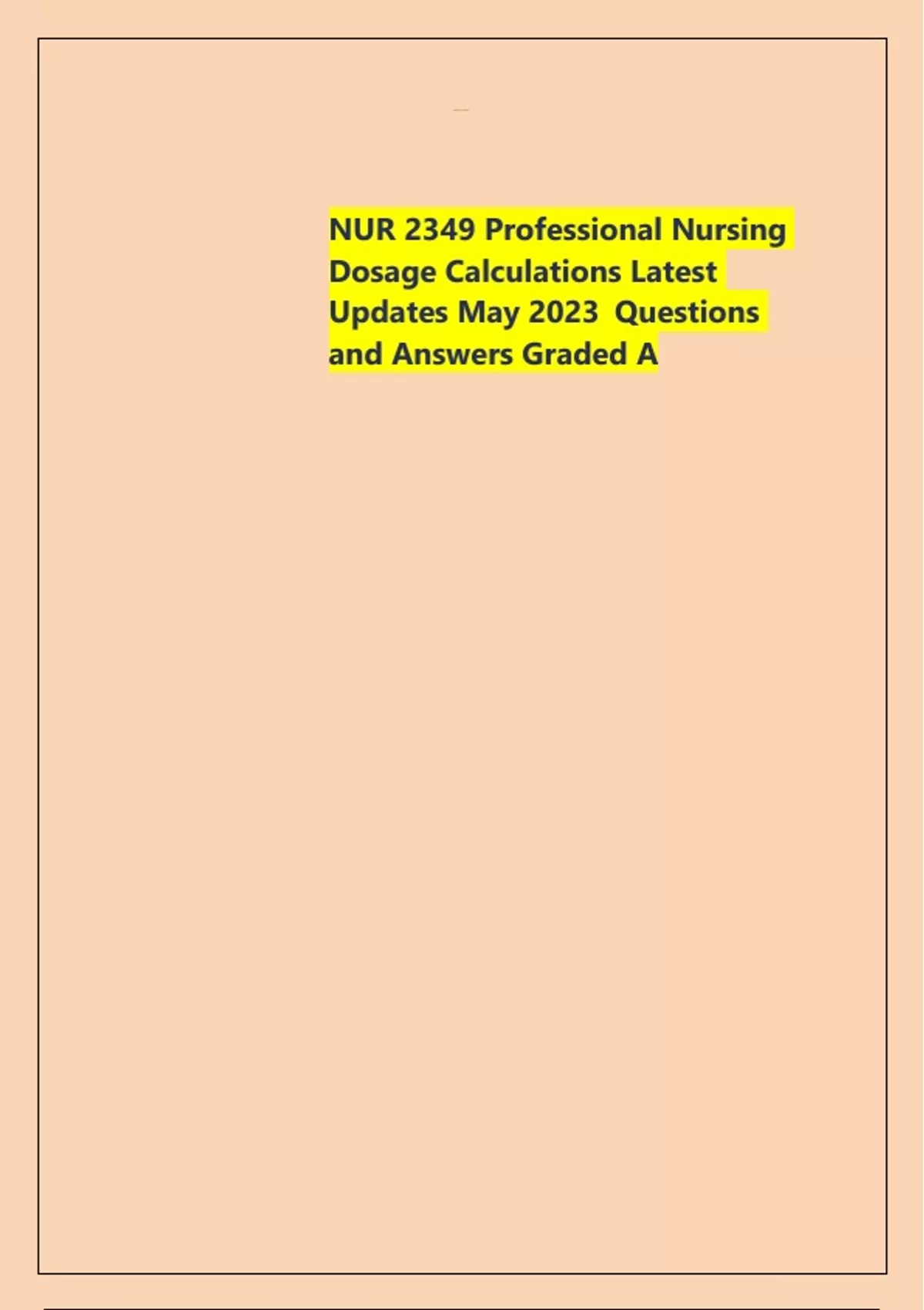 NUR 2349 Professional Nursing Dosage Calculations Latest Updates May 2023 Questions and Answers Graded A