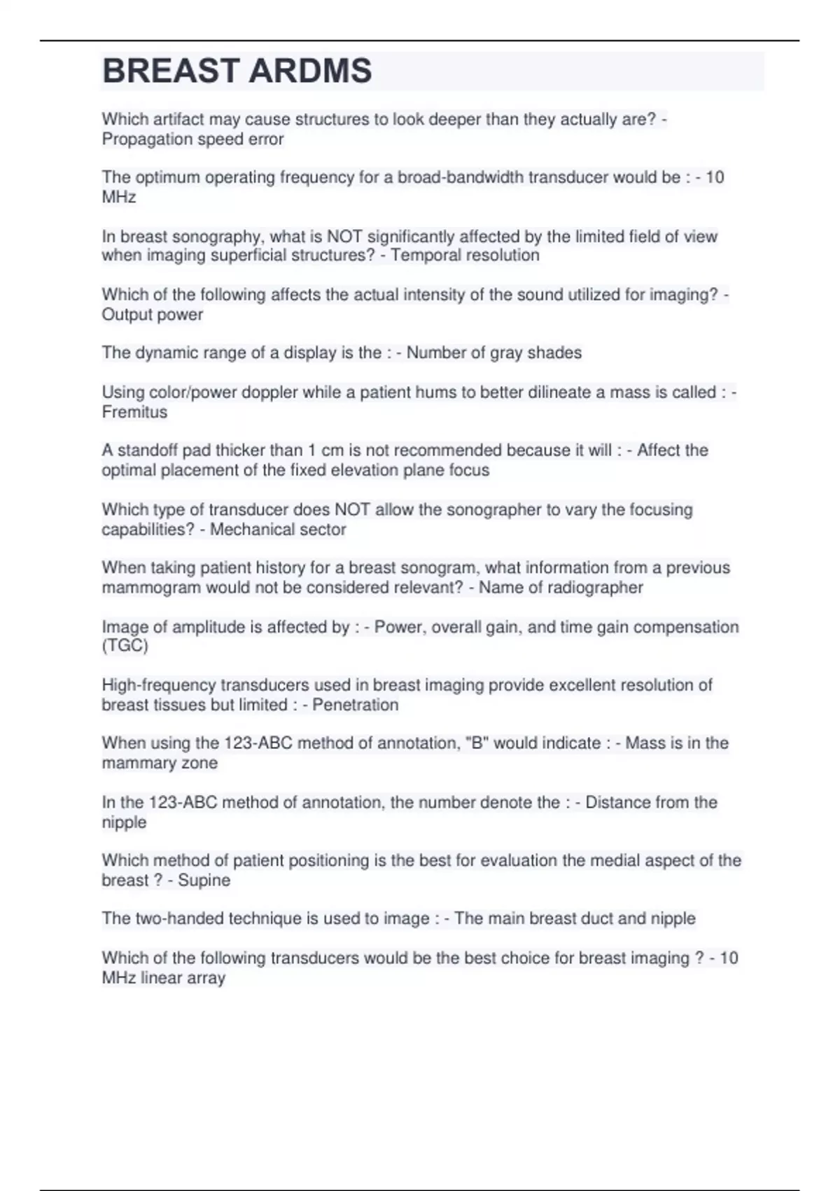 Exam of 55 pages for the course PN Nursing at PN Nursing (BREAST ARDMS.)