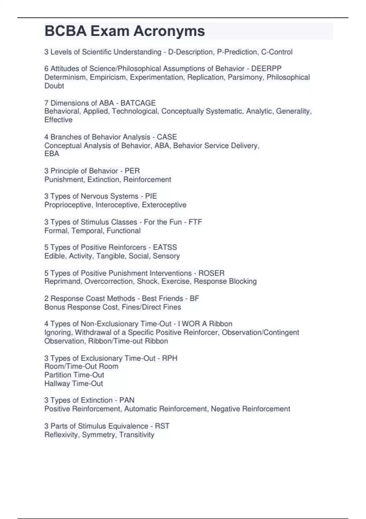 Exam of 5 pages for the course PN Nursing at PN Nursing (BCBA Exam Acronyms.)