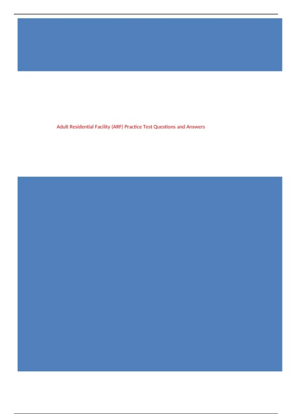 Adult Residential Facility (ARF) Practice Test Questions and Answers