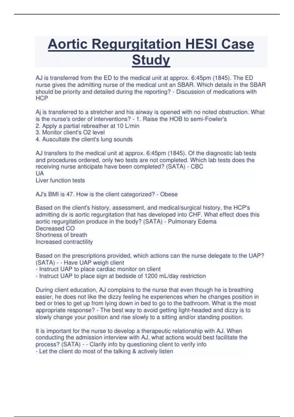 Aortic Regurgitation HESI Case Study.