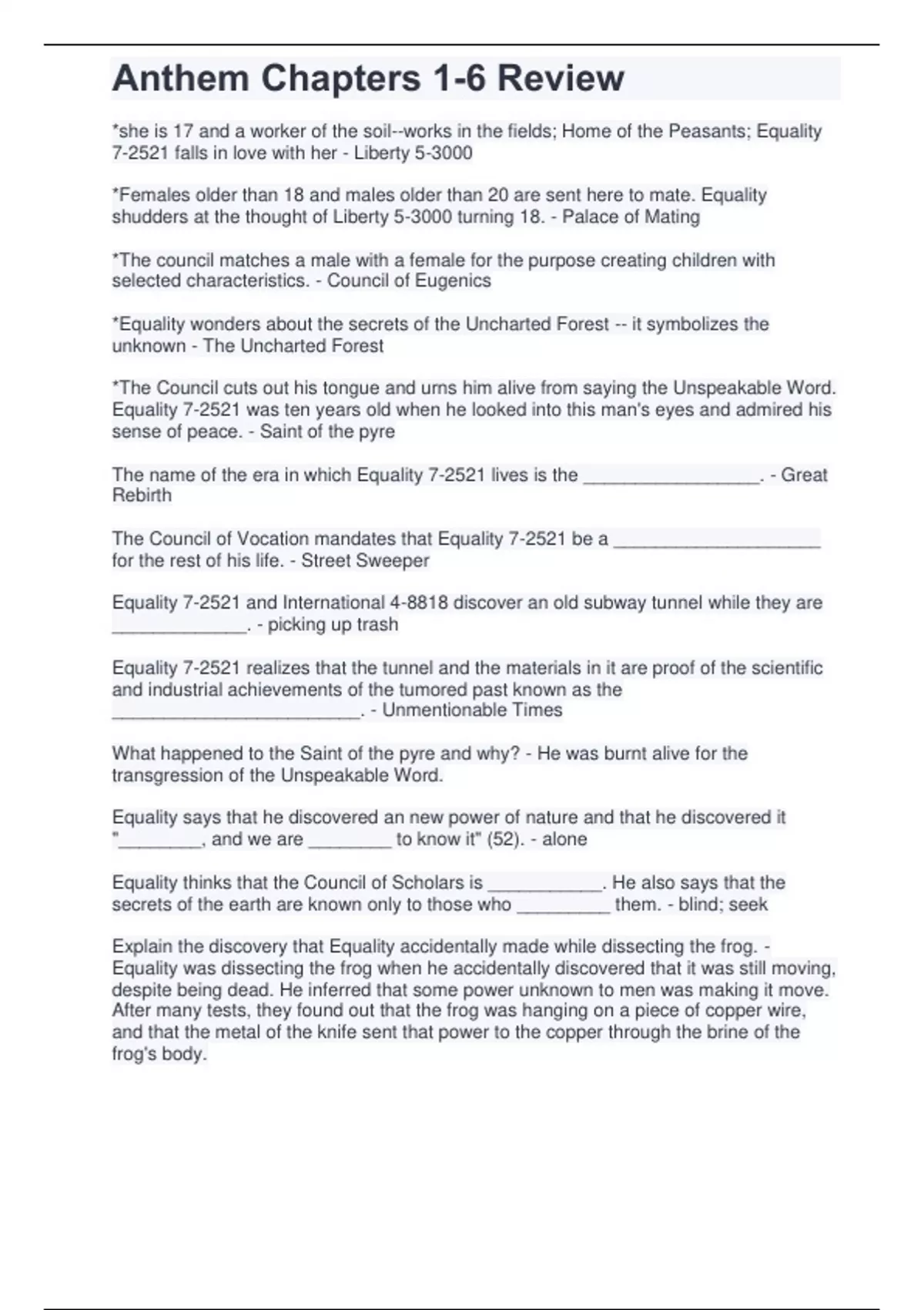 Anthem Chapters 1-6 Review.