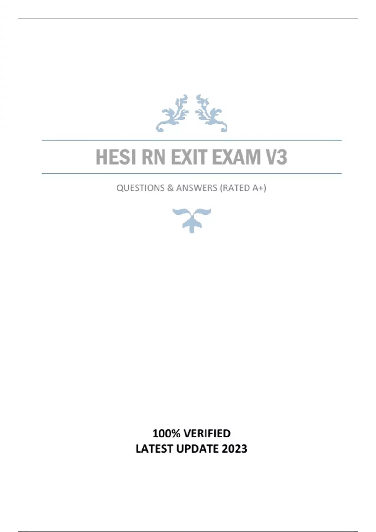 HESI RN EXIT EXAM V3 - QUESTIONS & ANSWERS (RATED A+) 100% VERIFIED LATEST UPDATE 2023