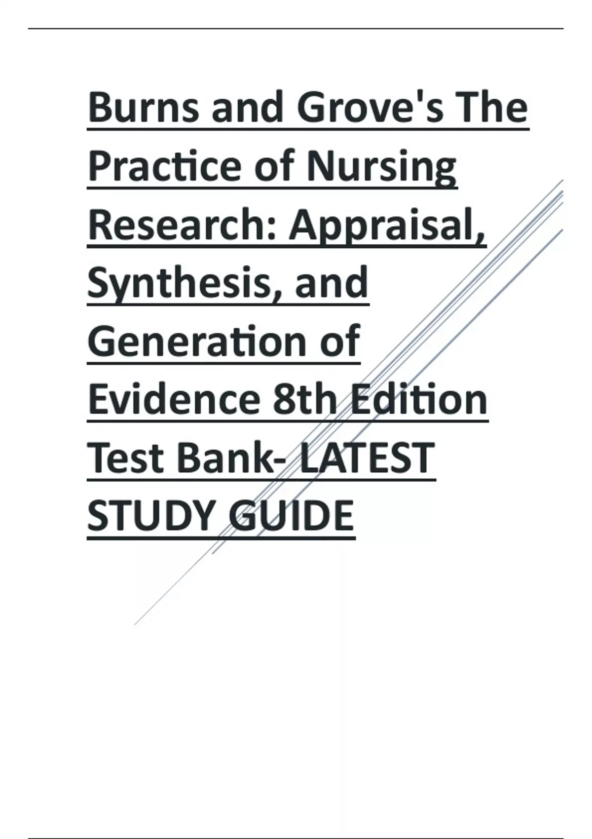 Burns and Grove's The Practice of Nursing Research Appraisal, Synthesis, and Generation of Evidence 8th Edition Test Bank-LATEST STUDY GUIDE.pdf