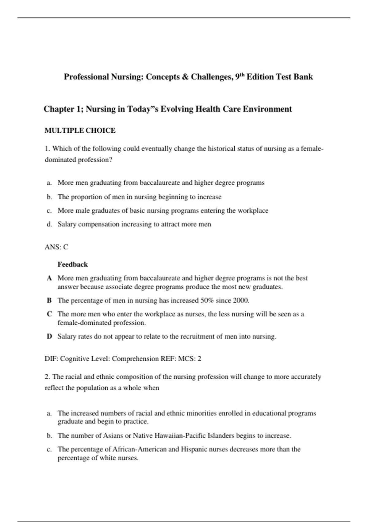 Test Bank For Professional Nursing Concepts Challenges 9th Edition Beth Black