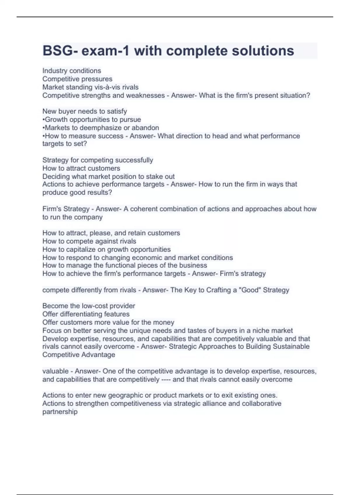 bsg exam 1 with complete solutions