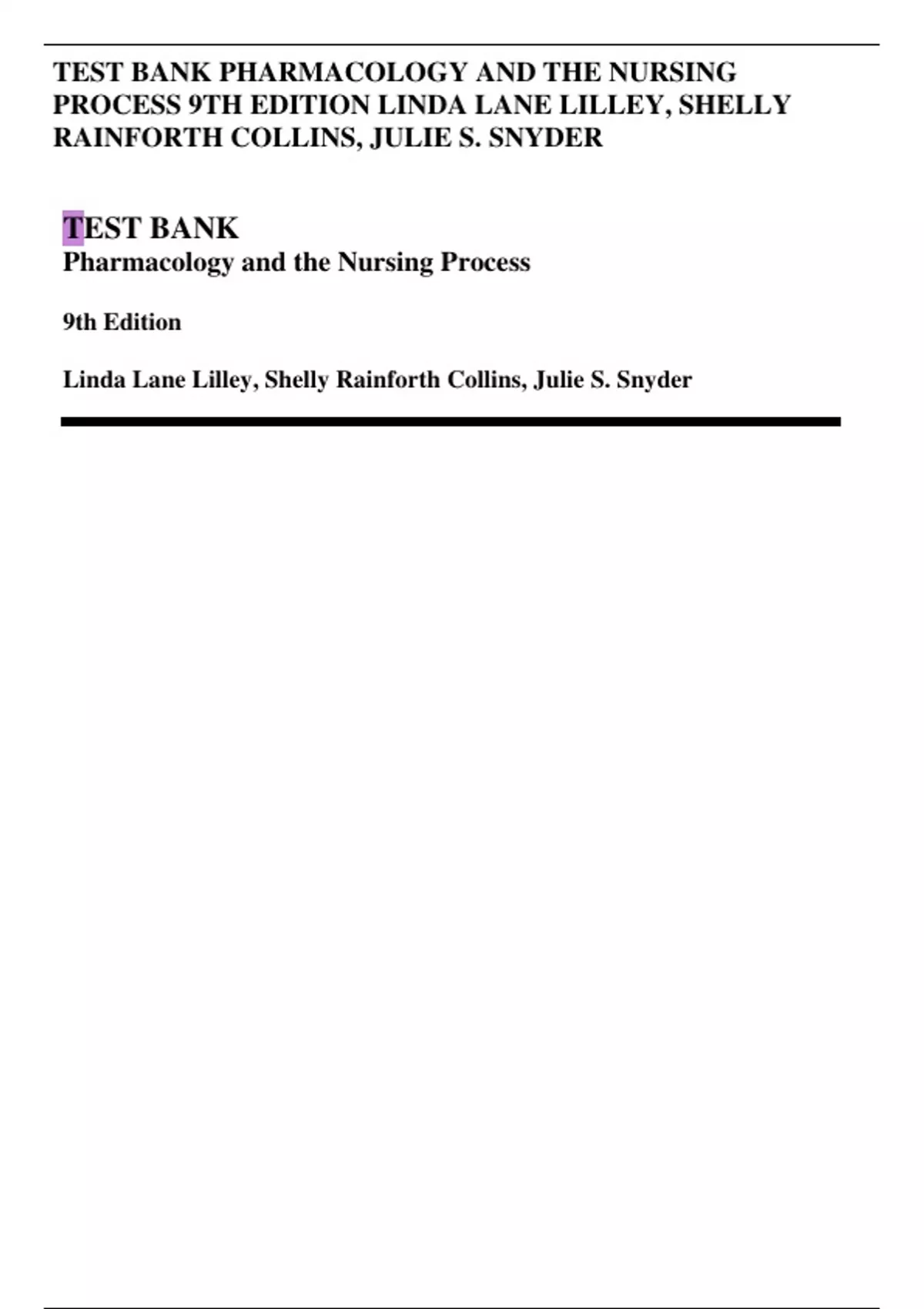 TEST BANK Pharmacology and the Nursing Process TEST BANK Pharmacology and the Nursing Process TEST BANK Pharmacology and the Nursing Process
