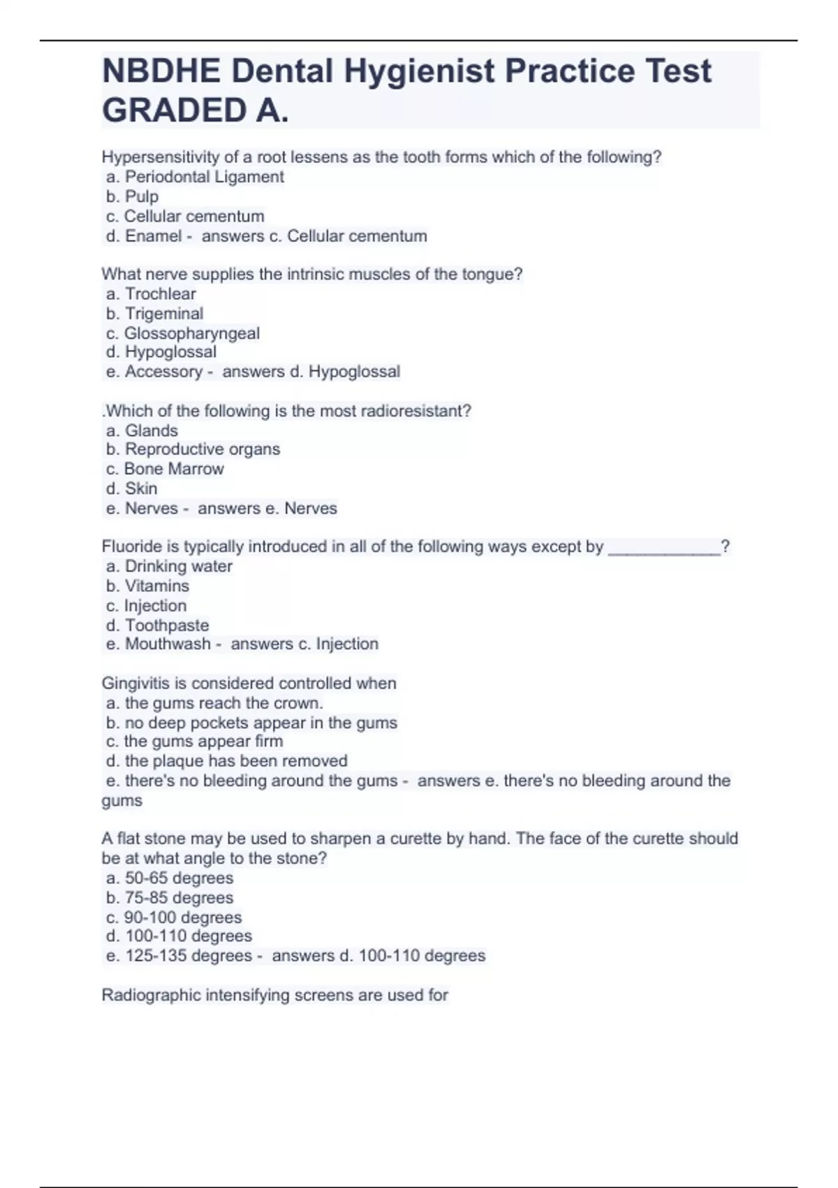 NBDHE Dental Hygienist Practice Test GRADED A.
