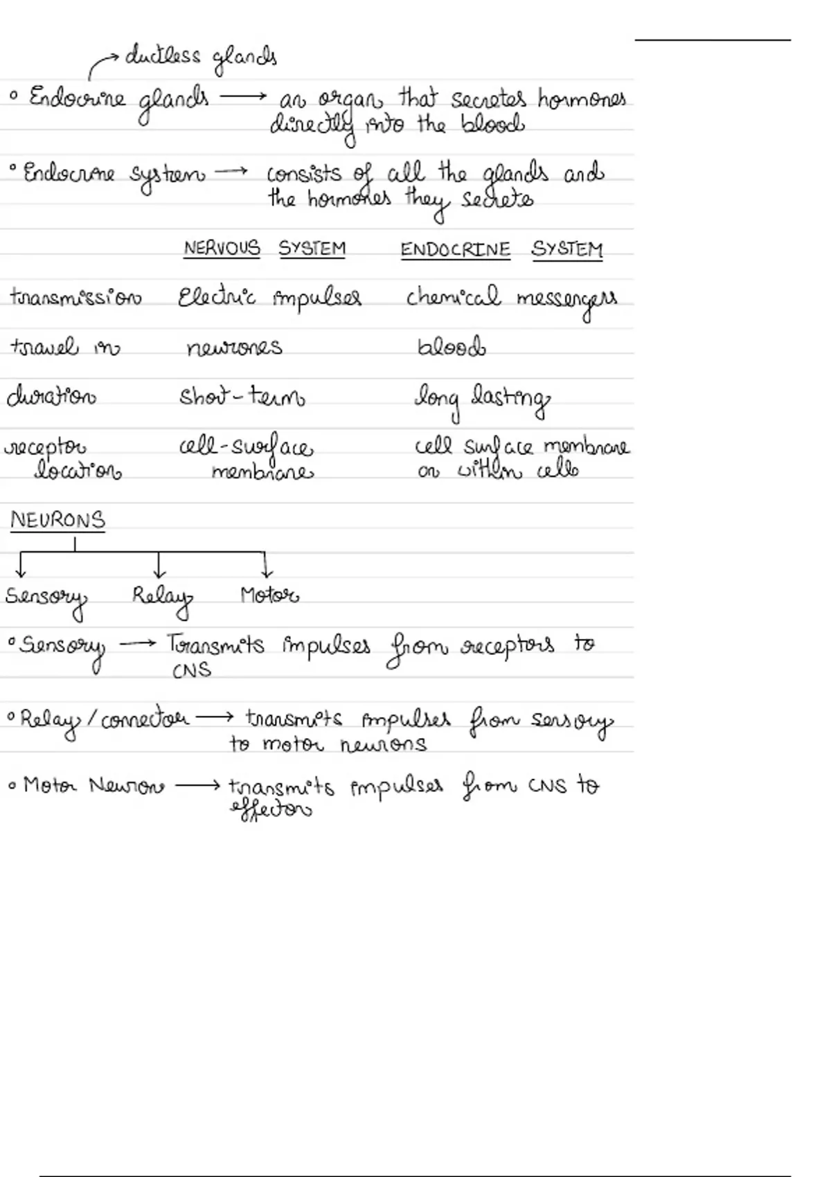 Summary notes for the unit control and coordination cie a level biology