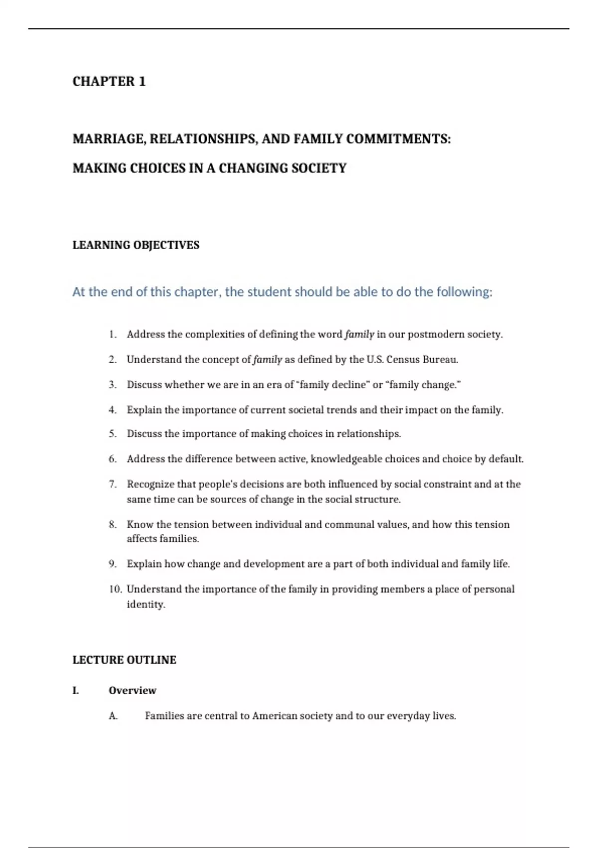 LECTURE OUTLINE