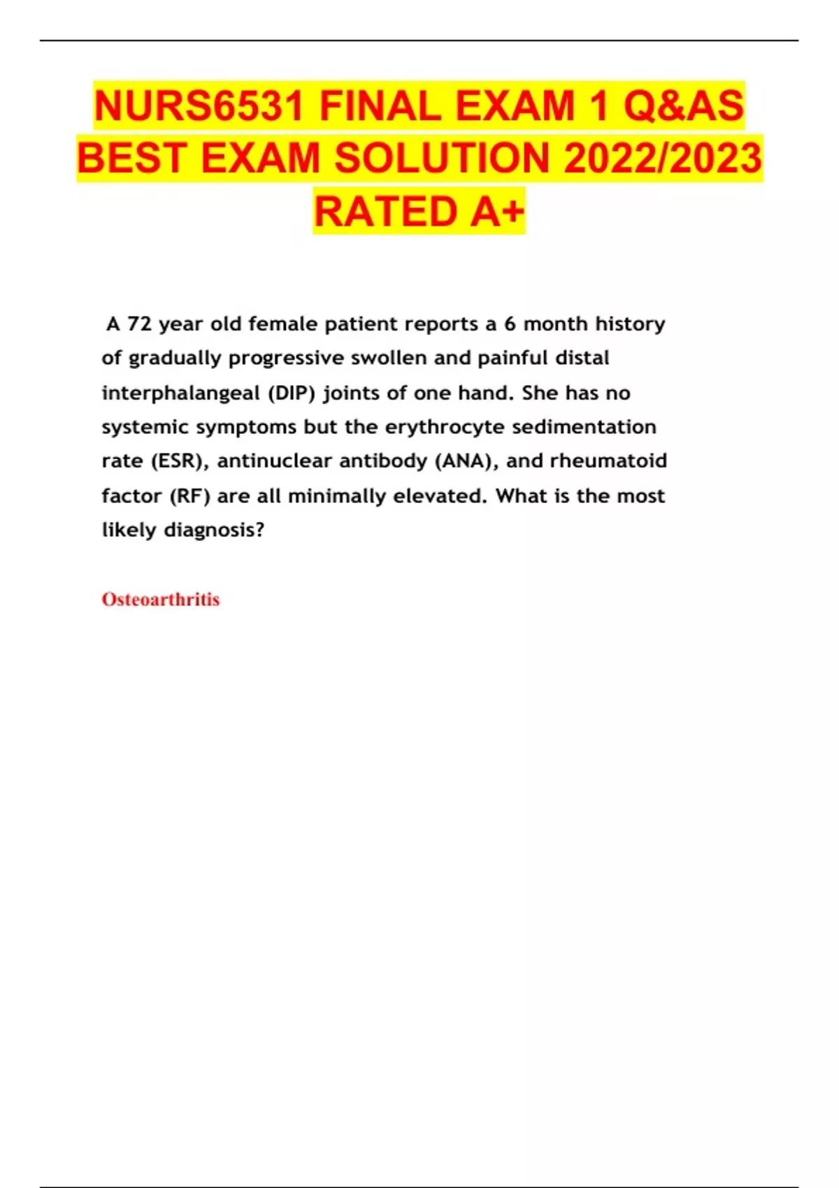 Exam (elaborations) NURS6531 FINAL EXAM 1 Q&AS BEST EXAM SOLUTION 2022/2023 RATED A+ Exam (elaborations) NURS-6531D-1/NURS-6531N-1-Adv. Practice Care of Adults FINAL EXAMS Q&AS BEST EXAM SOLUTION GUARANTEED SUCCESS LATEST UPDATE 2022/2023 RATED A+ Exam (e