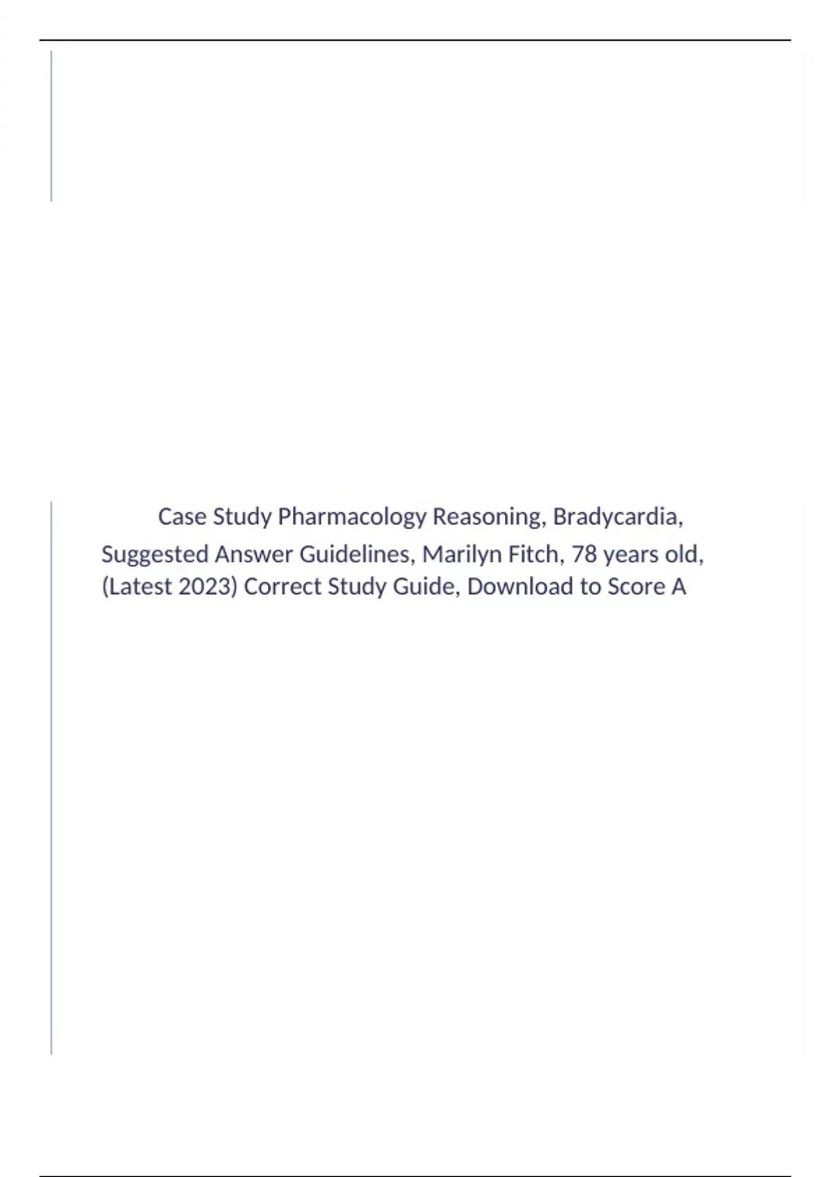 Case Study Pharmacology Reasoning, Bradycardia, Suggested Answer Guidelines, Marilyn Fitch, 78 years old, (Latest 2023) Correct Study Guide, Download to Score A