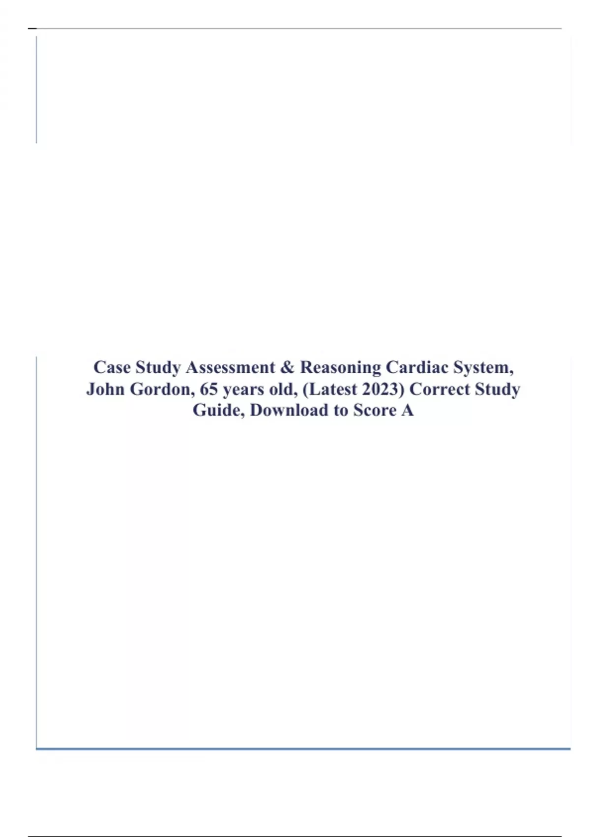 Case Study Assessment & Reasoning Cardiac System, John Gordon, 65 years old, (Latest 2023) Correct Study Guide, Download to Score A