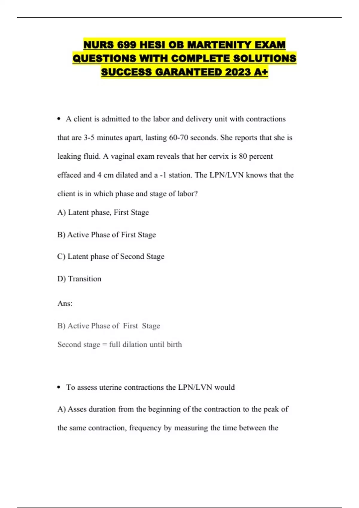 NURS 699 HESI OB MARTENITY EXAM QUESTIONS WITH COMPLETE SOLUTIONS SUCCESS GARANTEED 2023 A+