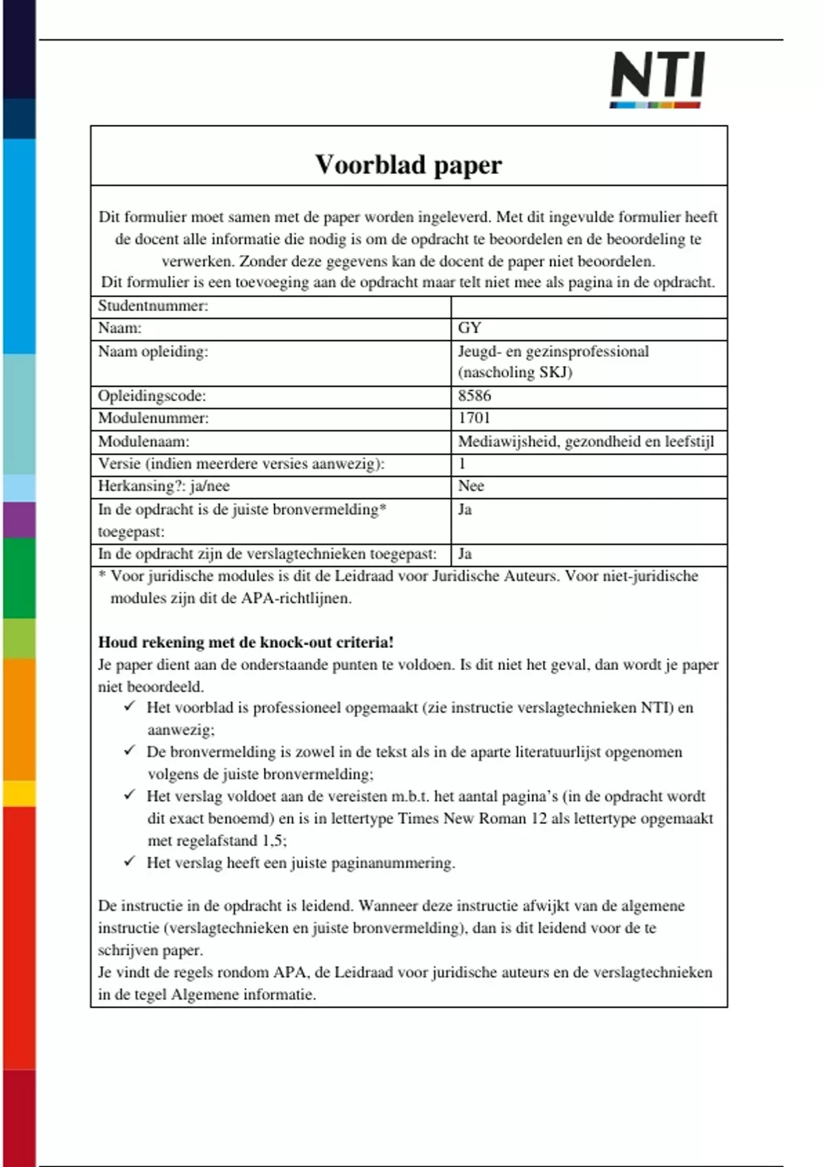 Dit formulier moet samen met de paper worden ingeleverd. Met dit ingevulde formulier heeft