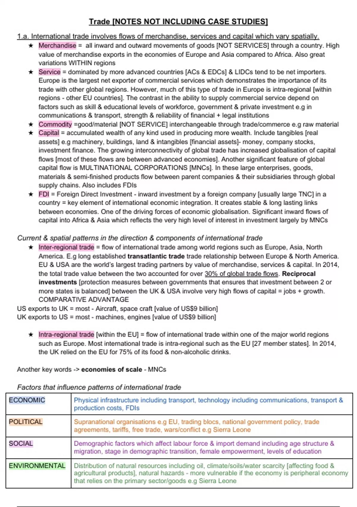 Trade [NOTES NOT INCLUDING CASE STUDIES]