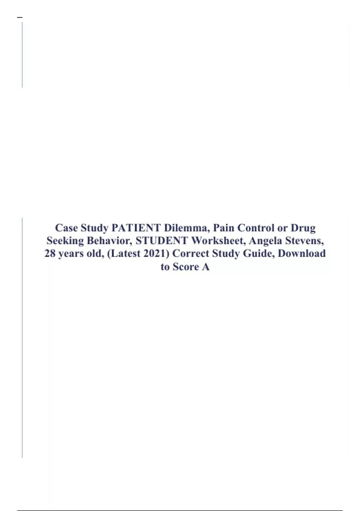 Case Study PATIENT Dilemma, Pain Control or Drug Seeking Behavior, STUDENT Worksheet, Angela Stevens, 28 years old, (Latest 2023) Correct Study Guide, Download to Score A