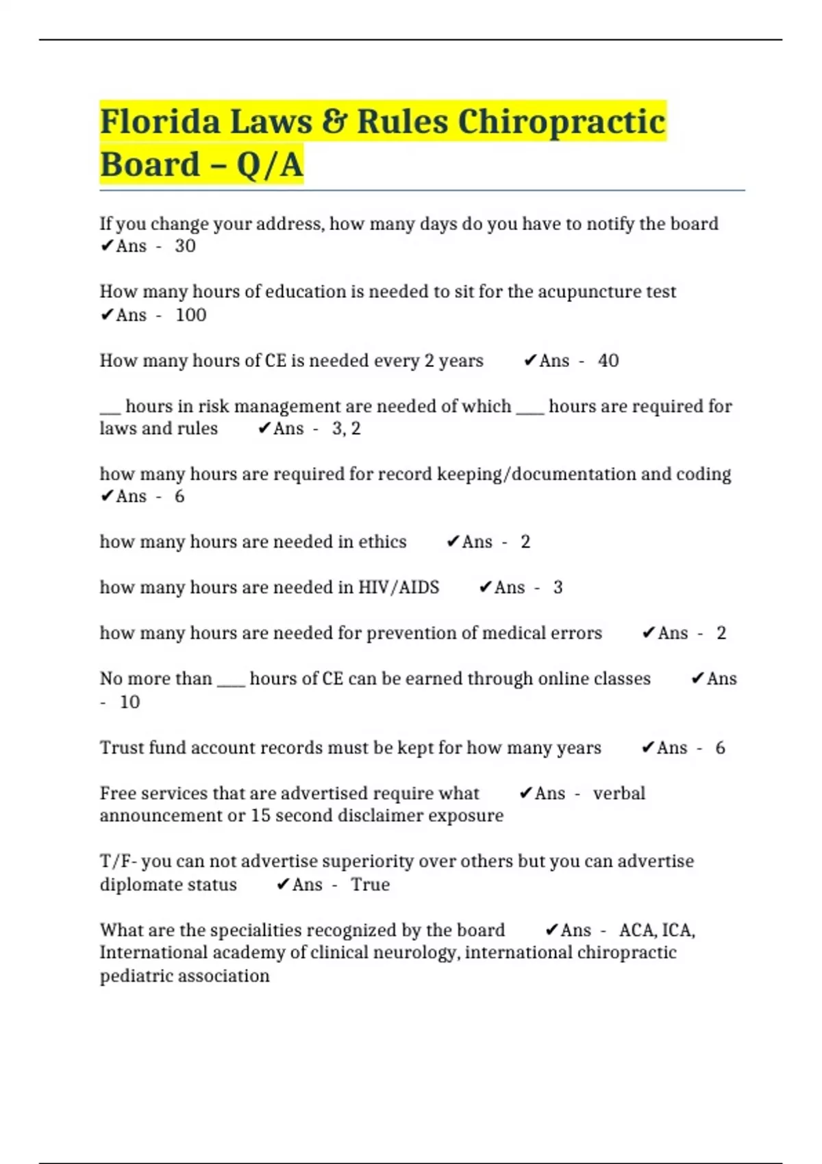 - Florida Laws & Rules Chiropractic Board – Q/A