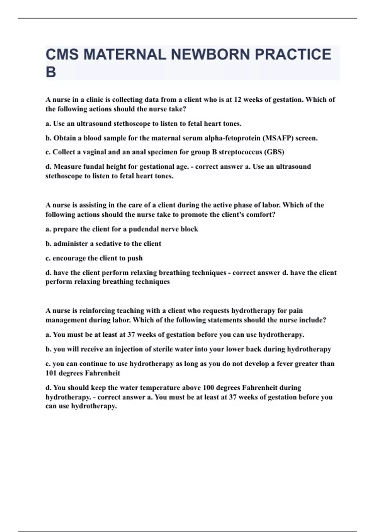 CMS MATERNAL NEWBORN PRACTICE B|UPDATED&VERIFIED|100% SOLVED|GUARANTEED SUCCESS