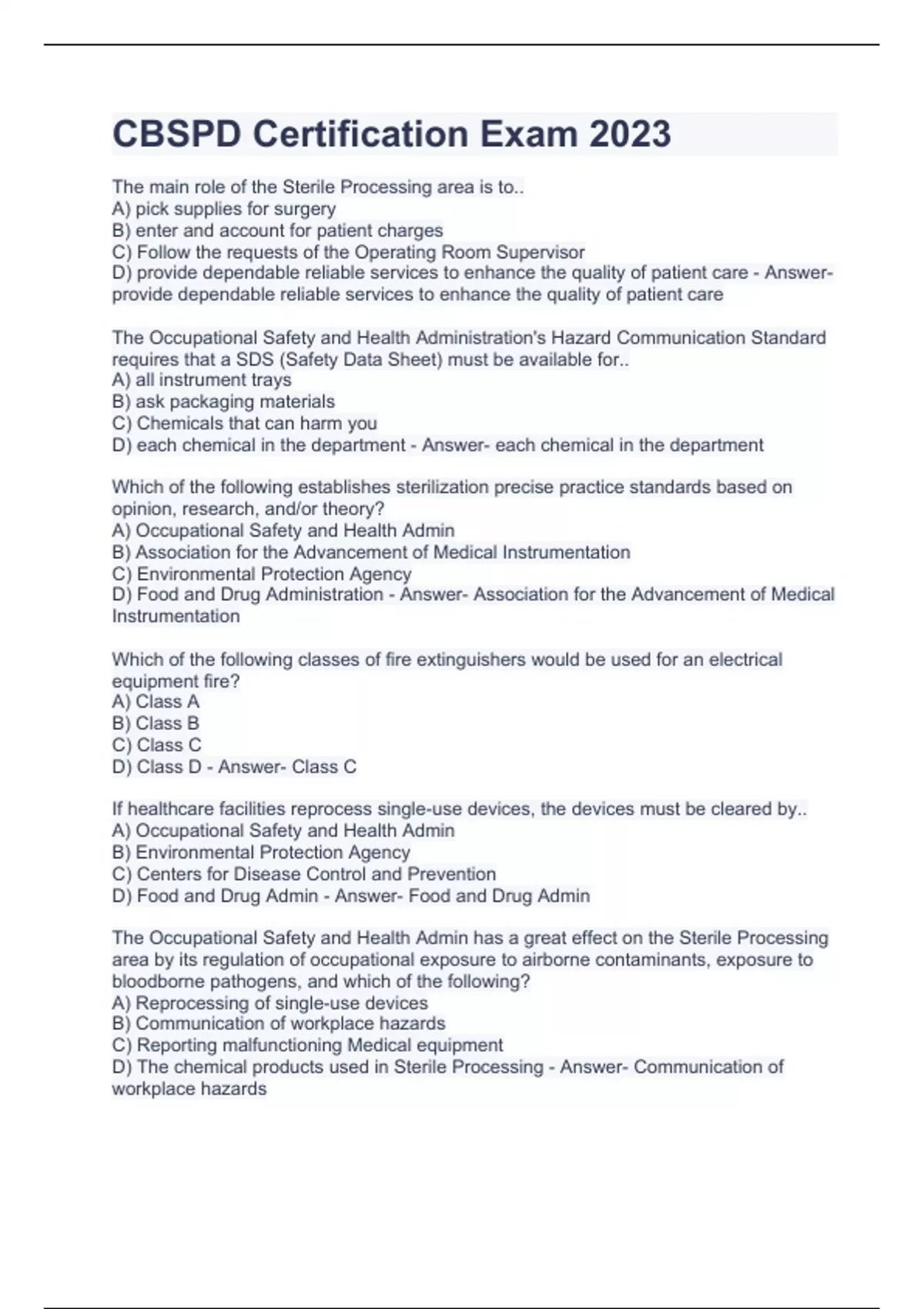 CBSPD Certification Exam 2023