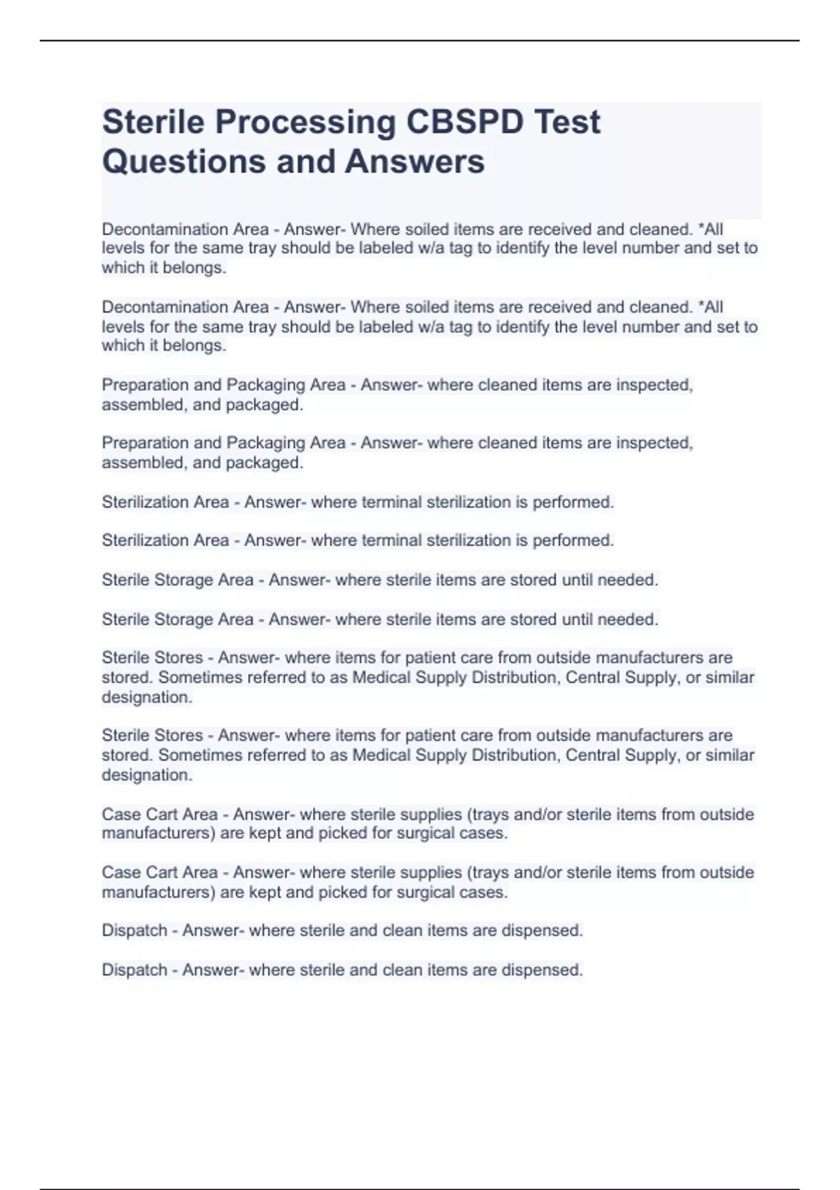 Sterile Processing CBSPD Test Questions and Answers