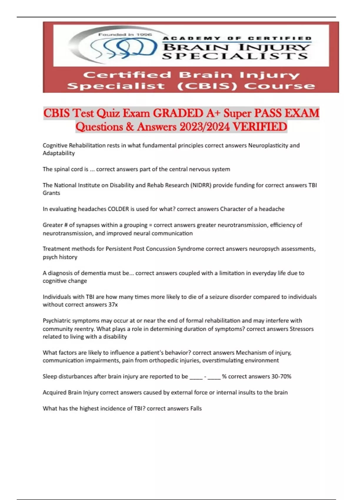 CBIS Test Quiz Exam GRADED A+ Super PASS EXAM Questions & Answers 2023/2024 VERIFIED