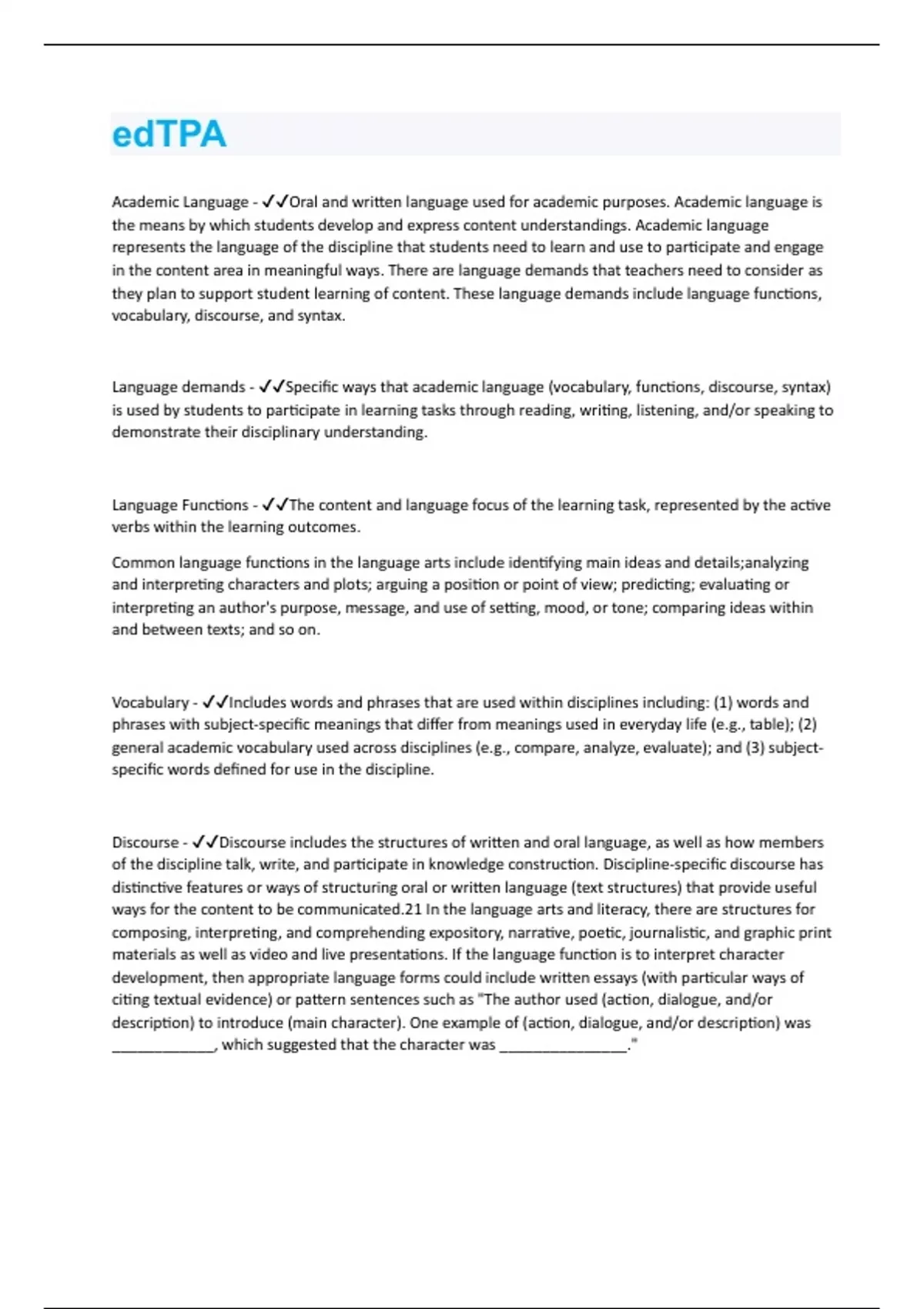 edTPA | Questions and Answers with complete solution