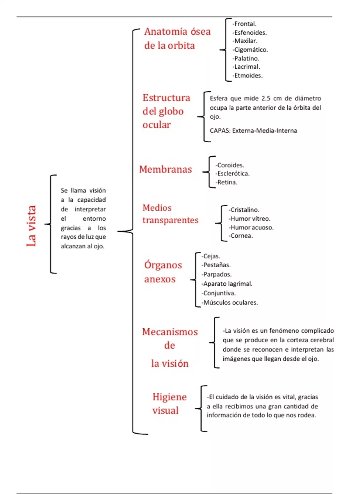 Organizador gráfico sobre el órgano sensorial de la vista