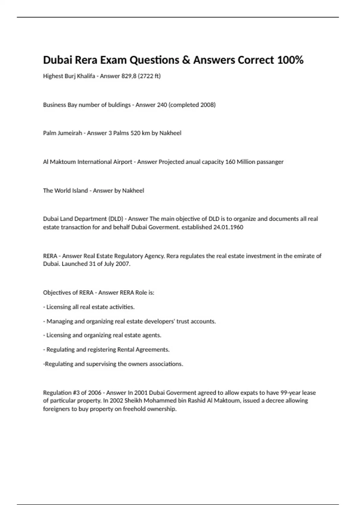 Highest Burj Khalifa - Answer 829,8 (2722 ft) Business Bay number of buldings - Answer 240 (completed 2008) Palm Jumeirah - Answer 3 Palms 520 km by Nakheel Al Maktoum International Airport - Answer Projected anual capacity 160 Million passanger The World Island - Answer by Nakheel Dubai Land Department (DLD) - Answer The main objective of DLD is to organize and documents all real estate transaction for and behalf Dubai Goverment. established 24.01.1960 RERA - Answer Real Estate Regulatory Agency. Rera regulates the real estate investment in the emirate of Dubai. Launched 31 of July 2007. Objectives of RERA - Answer RERA Role is: - Licensing all real estate activities. - Managing and organizing real estate developers' trust accounts. - Licensing and organizing real estate agents. - Regulating and registering Rental Agreements. -Regulating and supervising the owners associations. Regulation #3 of 2006 - Answer In 2001 Dubai Goverment agreed to allow expats to have 99-year lease of particular property. In 2002 Sheikh Mohammed bin Rashid Al Maktoum, issued a decree allowing foreigners to buy property on freehold ownership. Freehold - Answer You own property and land Forever. Leasehold - Answer You own property but not land Tarakheesi - Answer Tarakheesi is web application meant for Real Estate Offices for managing Real Estate Broker operation. -Issuing broker card -Updating broker card Cancelling broker card. Blue Broker Card - Answer Blue card issued under the DED licenses and brokers are allowed to work in Dubai. Allows brokers to sell/lease in Dubai + FZ + Sell for developers but not time share. Green Broker Card - Answer Can only sell developers project. Red Broker Card - Answer only time share properties; sell one unit to more than one person. Yellow Broker Card - Answer only FZ properties Return on investment (ROI) - Answer It measures the gain or loss generated on an investment relative to the amount of money invested. ROI is usually expressed as a percentage and is typically used for personal financial decisions, to compare a company's profitability or to compare the efficiency of different investments. ROI (Net profit/Cost of investment)x100 What's is a listing? - Answer A listing is a contract between an owner and broker. What is the different between type of listings? - Answer -Exclusive -Open listing What is multiple listing? - Answer MLS is an arrangement among a group of agents whereby they agree to share information and split commission. What is a qualified buyer? - Answer Seeking to buy. What is an assent? - Answer It is something of value that one owns. What is liability? - Answer It is opposite of asset ; It's a debt or obligation that one owns. What is the Law 26 of 2007 - Answer It regulates the relationship between the tenant and landlord. ORN - Answer Office Registration Number BRN - Answer Broker Registration Number STR - Answer Special Transaction Register All transaction Agreements If ad does't have BRN or ORN Number - Answer Penalty AED 50'000 Decree #21 of 2013 - Answer Only the government has the power to cancel projects. OQOOD - Answer Pre-Title Registration "My ownership certificate" MOLLAK - Answer My Strata Certificate Owner Association And Registration Code of Etics - Answer regulates your relationship with customers, with other agents and with public. Dubai Land Department (DLD) - Answer Established on January 24th 1960 Real Estate Regulatory Agency (RERA) - Answer Established in 2007 RERA Role is: - Answer Licensing all real estate activities. • Managing real estate developers' trust accounts. • Licensing and organizing real estate agents. • Regulating and registering Rental Agreements. • Regulating and supervising the owners associations • Regulating real estate advertisements in the media. • Regulating and licensing Real estate exhibitions. • Enhancing national participation in the real estate sector. • Increasing real estate awareness DREI - Answer Dubai Real Estate Institute (DREI) Rental Dispute Settlement Center (RDC) - Answer The Rental Dispute Center, based at Dubai Land Department, has been moved under the umbrella of DLD through Decree No: 26 of 2013. Decree No. (21) of 2013 - Answer cancelled property projects DEVELOPER' REGISTER - Answer The Developer must be registered with RERA. The Project must be registered with RERA. The Project Escrow A/C must be registered with RERA OWNER'S ASSOCIATION - Answer Formation of the Owner's Association. Issuance of 'My Strata Certificate' Launched Freehold - Answer In May 2002 Regulation No. (3) of 2006 Specifying Areas where Non-Locals can own Property in the Emirate of Dubai Leasehold - Answer In 2001 In Leasehold you own the property, but not the land. Leasehold ownership is anywhere from over 10 years up to 99 years. Is Ethics the same as law? - Answer No