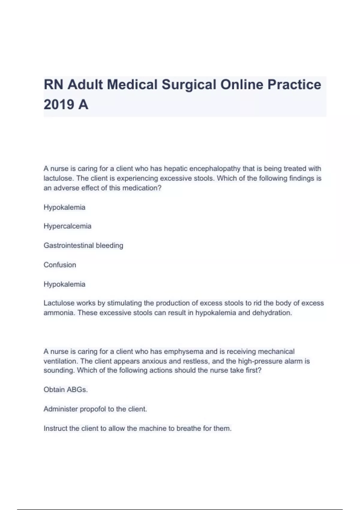 RN Adult Medical Surgical online Practice 2019 A Questions & Answers (A+ GRADED 100% VERIFIED)