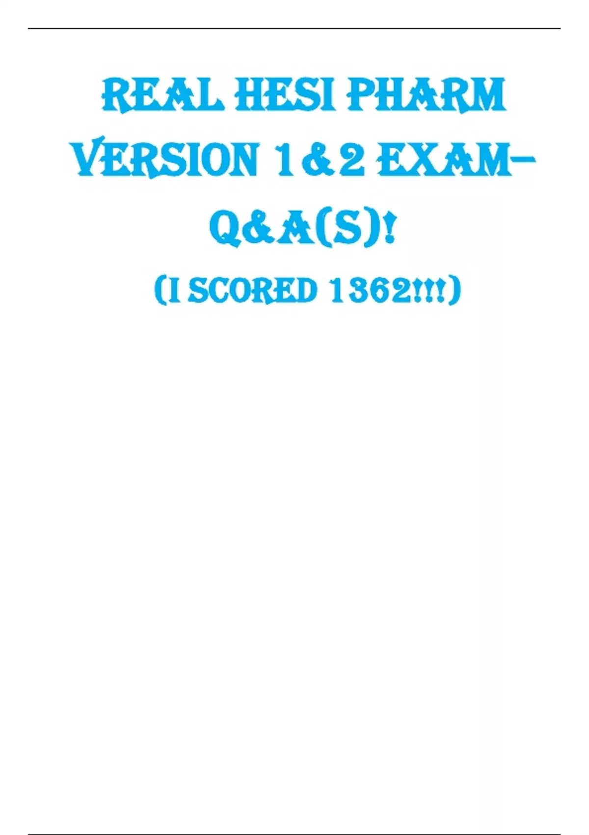 REAL HESI PHARM Version 1&2 EXAM– Q&A(s)! (I scored 1362!!!)