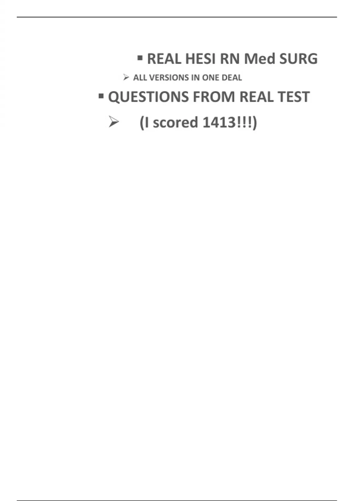 REAL HESI RN Med SURG ALL VERSIONS IN ONE DEAL QUESTIONS FROM REAL TEST (I scored 1413!!!)