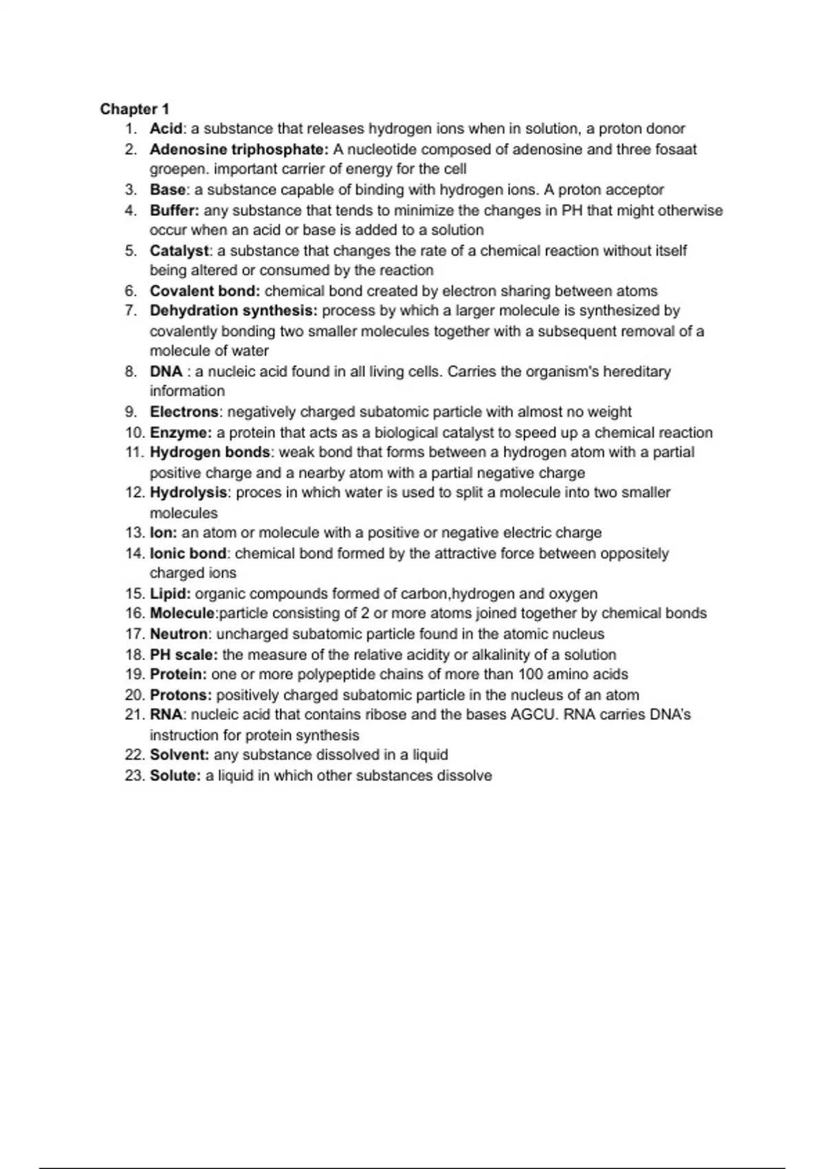 23. Solute: a liquid in which other substances dissolve