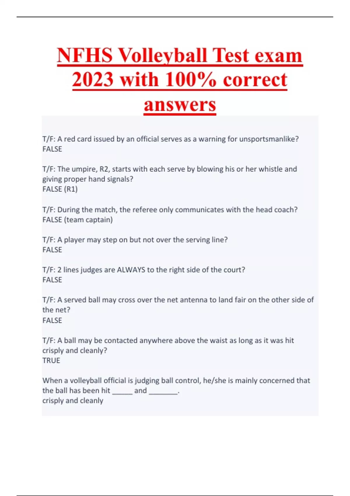 NFHS Volleyball Test exam 2023 with 100% correct answers
