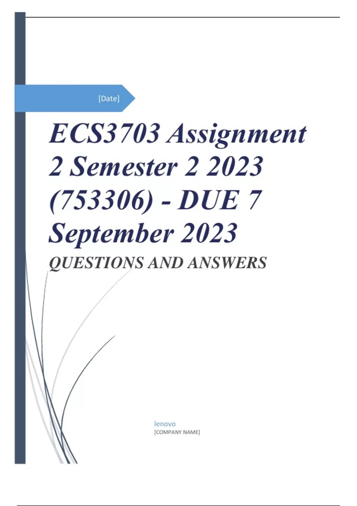 ECS3703 Assignment 2 Semester 2 2023 (753306) - DUE 7 September 2023