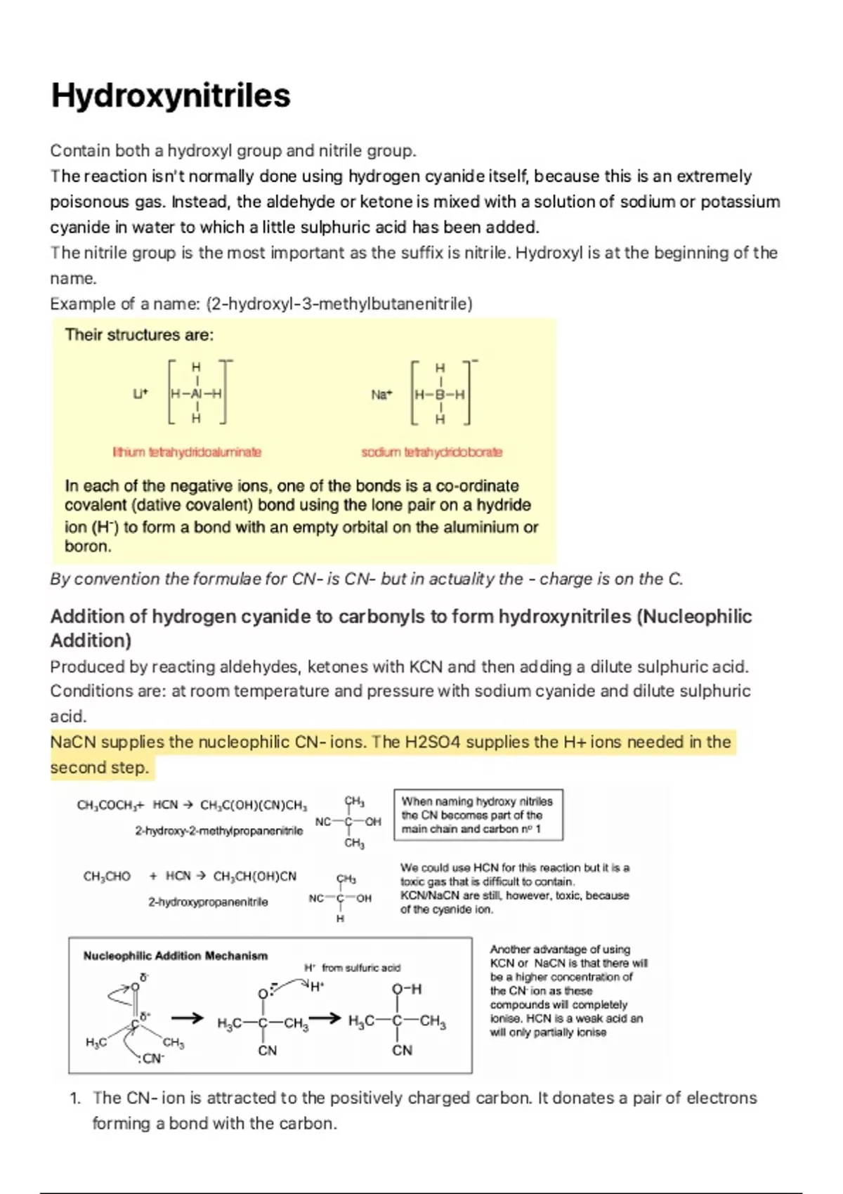 ALEVEL CHEMSITRY - Hydroxynitriles Notes