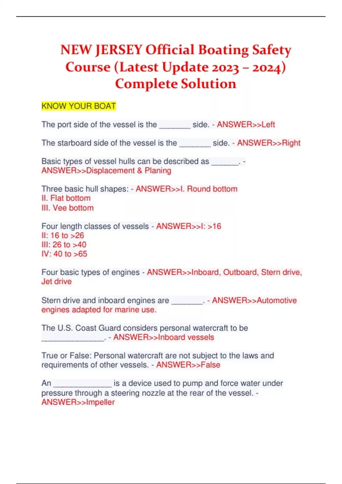 NEW JERSEY Official Boating Safety Course (Latest Update 2023 – 2024) Complete Solution