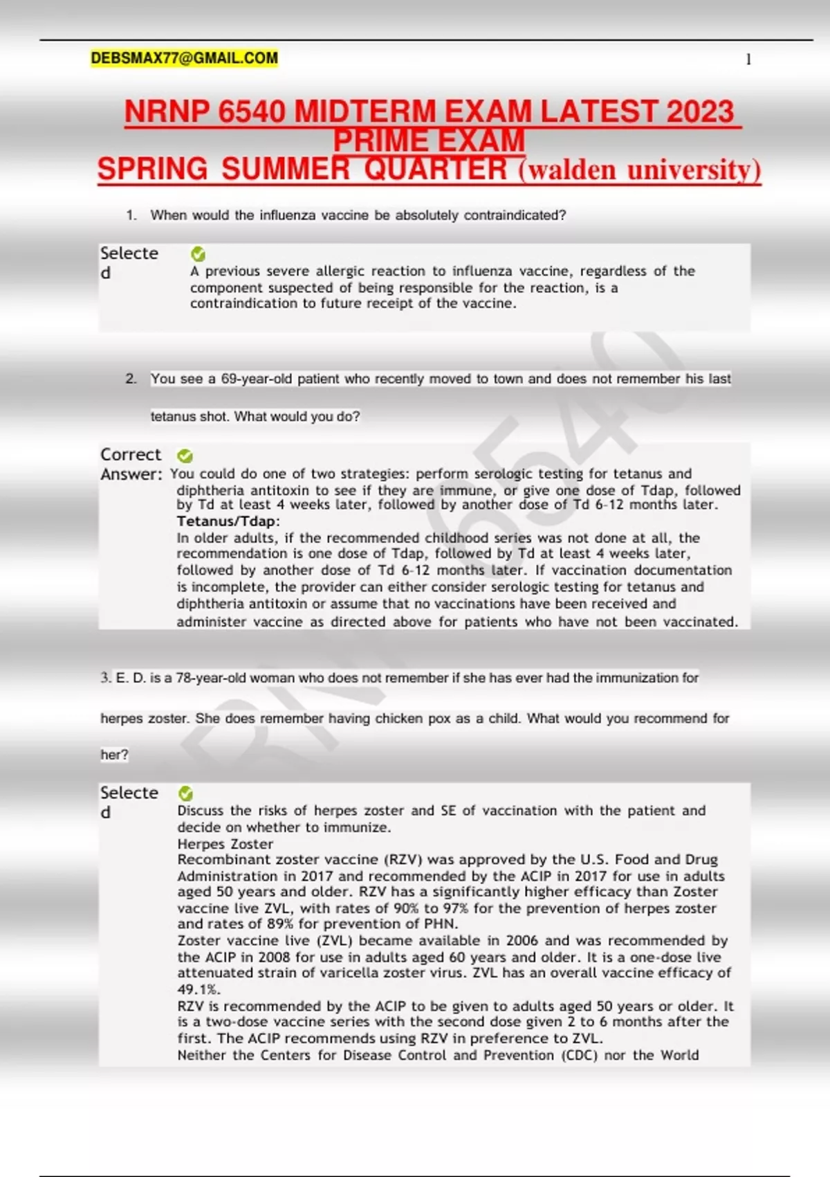 NRNP 6540 MIDTERM EXAM LATEST 2023 PRIME EXAM SPRING SUMMER QUARTER (walden university)