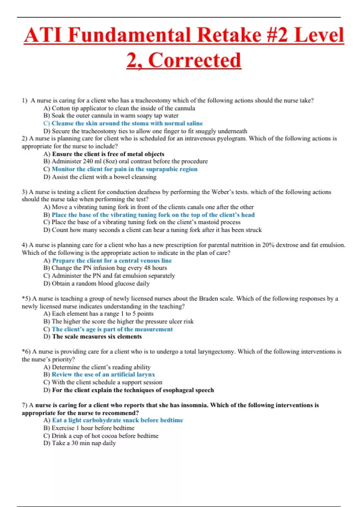 ATI Fundamental Retake #2 Level 2, Corrected Exam Latest update Graded A 2023