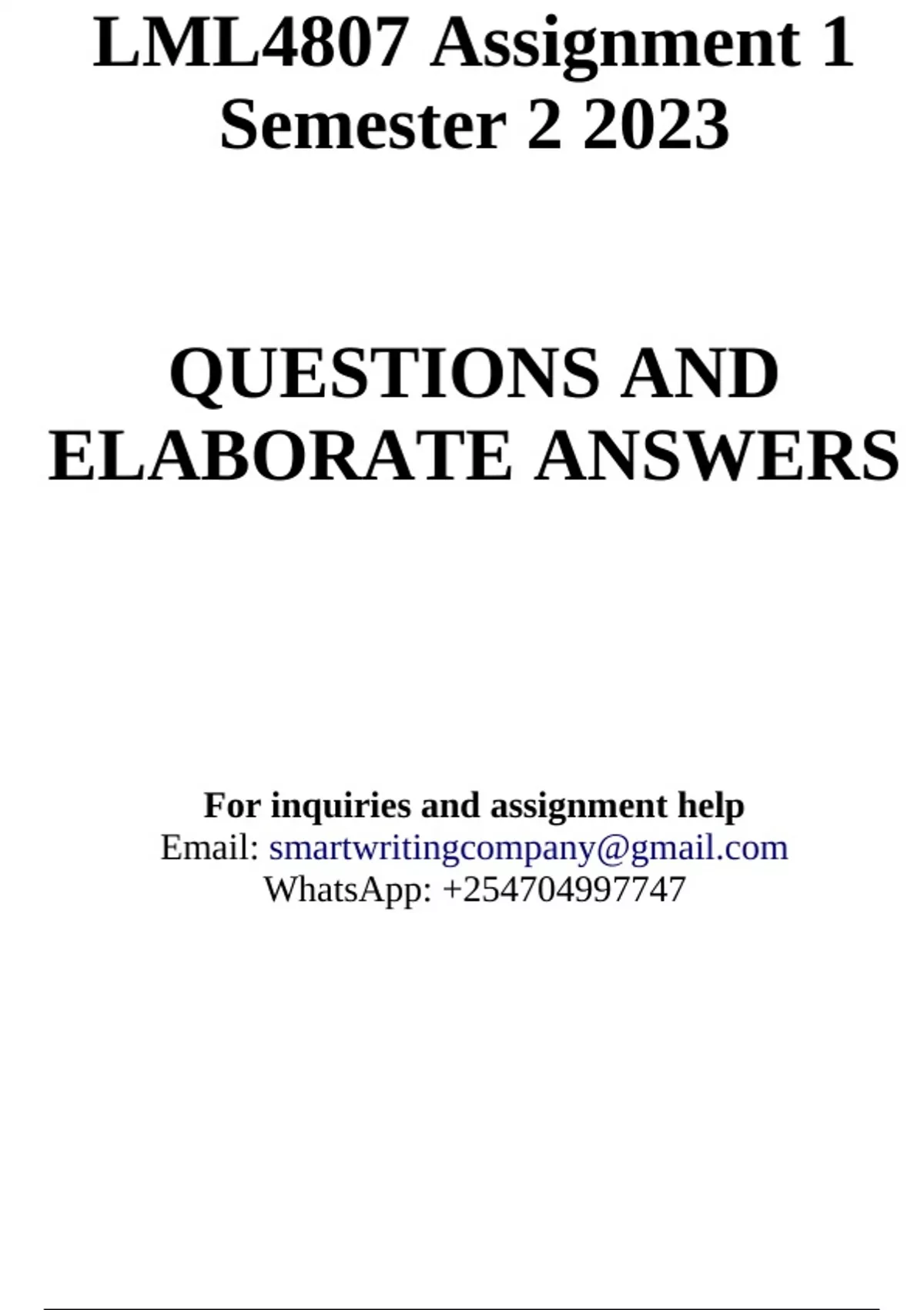 LML4807 Assignment 1 Semester 2 2023 - DUE 22 August 2023