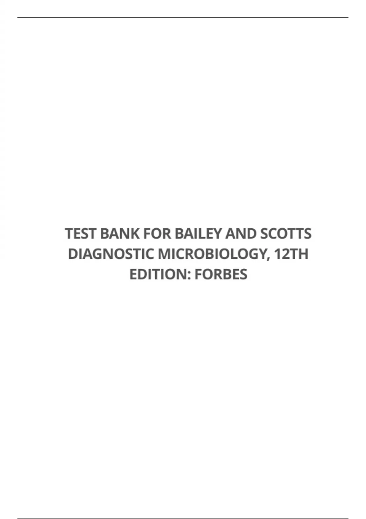 TEST BANK FOR BAILEY AND SCOTTS DIAGNOSTIC MICROBIOLOGY, 12TH EDITION: FORBES