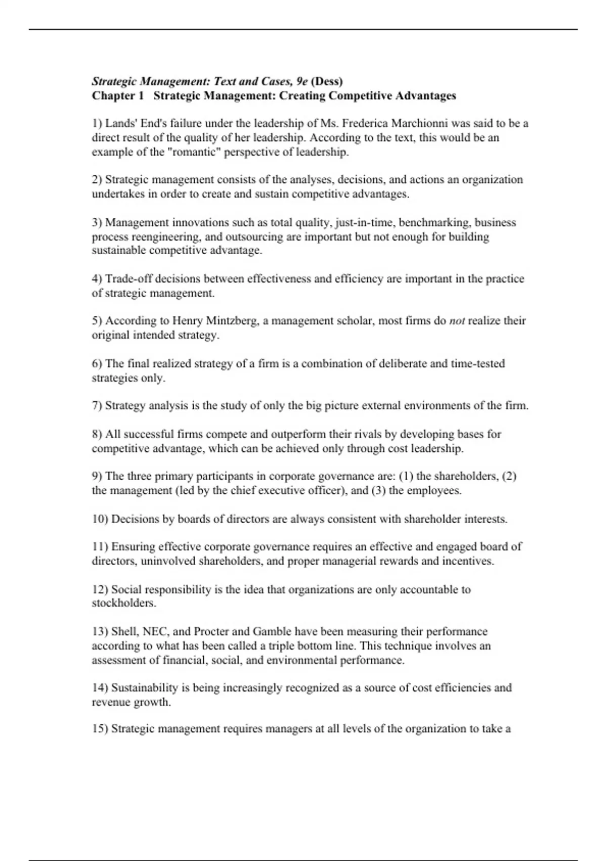 Elevate your exam preparation with the Test Bank for [Strategic Management Creating Competitive Advantage Strategic Management Creating Competitive Advantages,Dess,9e]. Ensure your exam success by practicing with official exam questions and gaining access to the answers. Master your class in the year , let's ace those exams together.