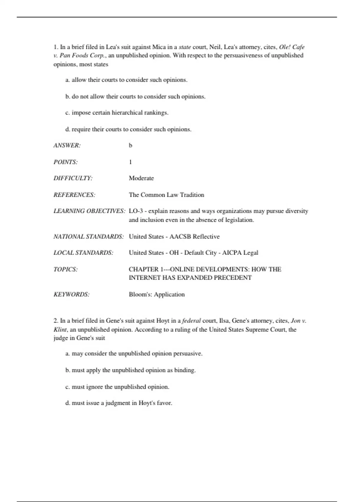 LOCAL STANDARDS: United States - OH - Default City - AICPA Critical Thinking