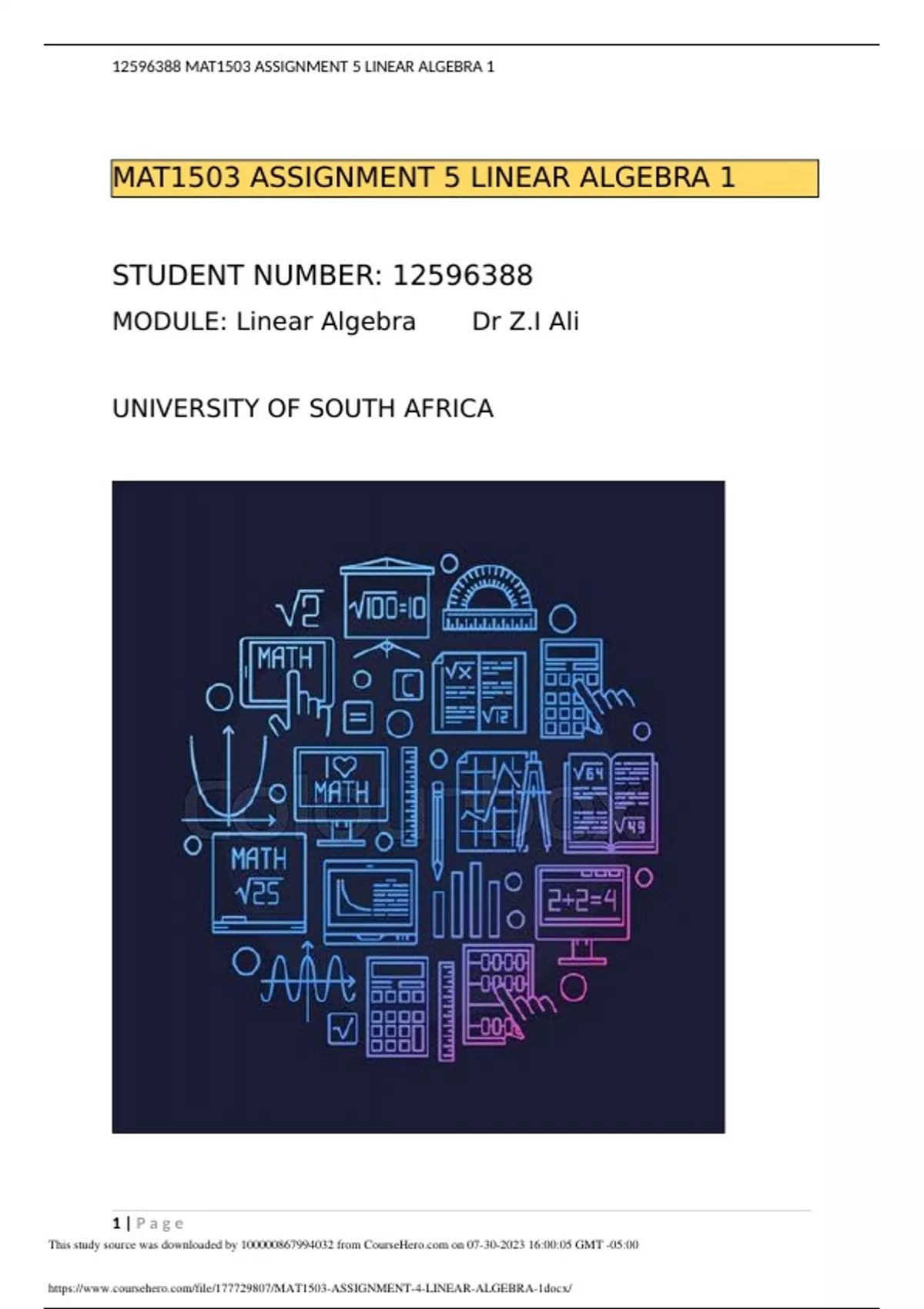 MAT1503 ASSIGNMENT 5 LINEAR ALGEBRA 1