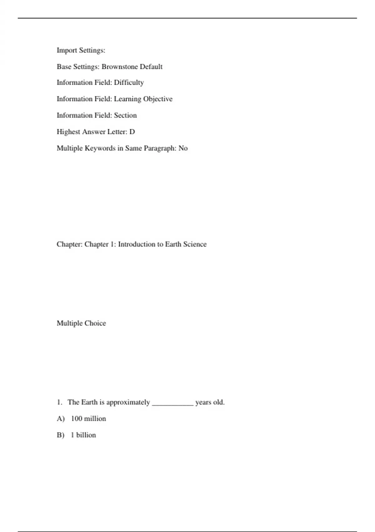 1. The Earth is approximately ___________ years old.