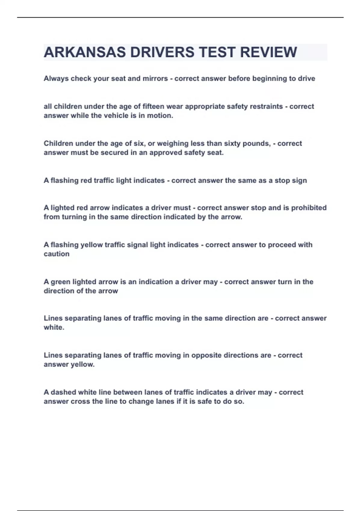 ARKANSAS DRIVERS TEST REVIEW|UPDATED&VERIFIED|100% SOLVED|GUARANTEED SUCCESS