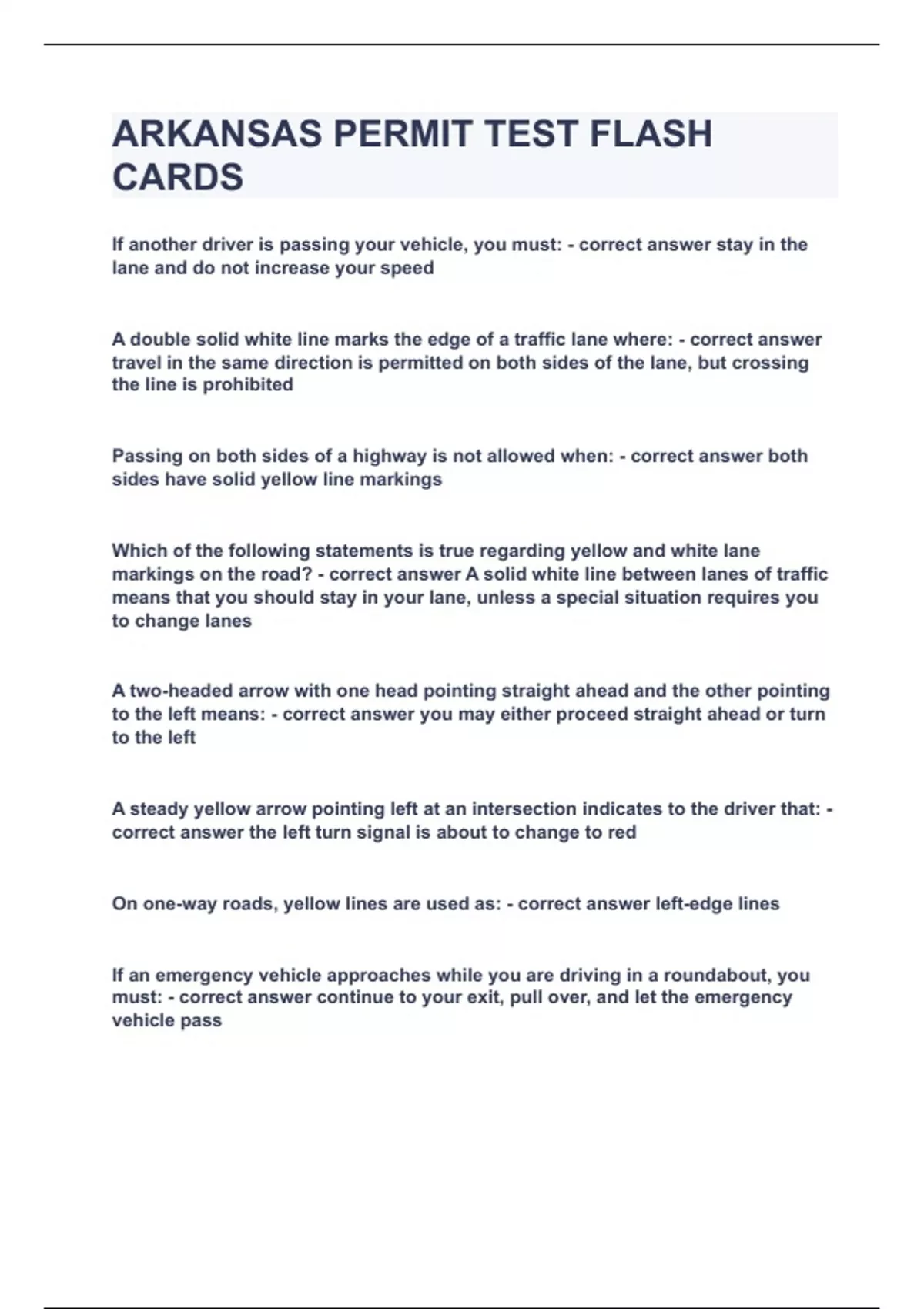 ARKANSAS PERMIT TEST FLASH CARDS|UPDATED&VERIFIED|100% SOLVED|GUARANTEED SUCCESS